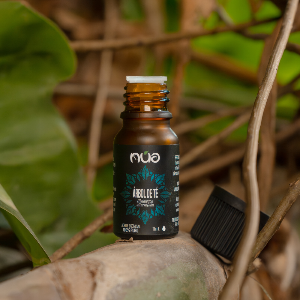 El aceite esencial de árbol de té (Melaleuca alternifolia) es uno de los productos más populares en la aromaterapia, por su versatilidad, eficacia y suavidad. Indispensable en cualquier rutina de cuidado personal natural. Este aceite esencial es especialmente valorado por sus propiedades antisépticas y su capacidad para combatir infecciones bacterianas, virales y fúngicas. Es un potente purificante de la piel y el cabello. Además, su aroma fresco y estimulante eleva el estado de ánimo y brinda claridad mental.