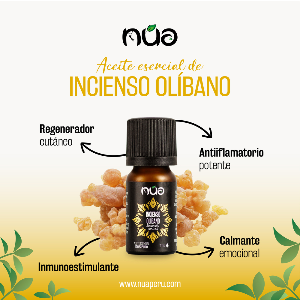 - Antiinfeccioso: El aceite esencial de incienso contiene compuestos orgánicos que combaten y previenen el desarrollo de bacterias y hongos.