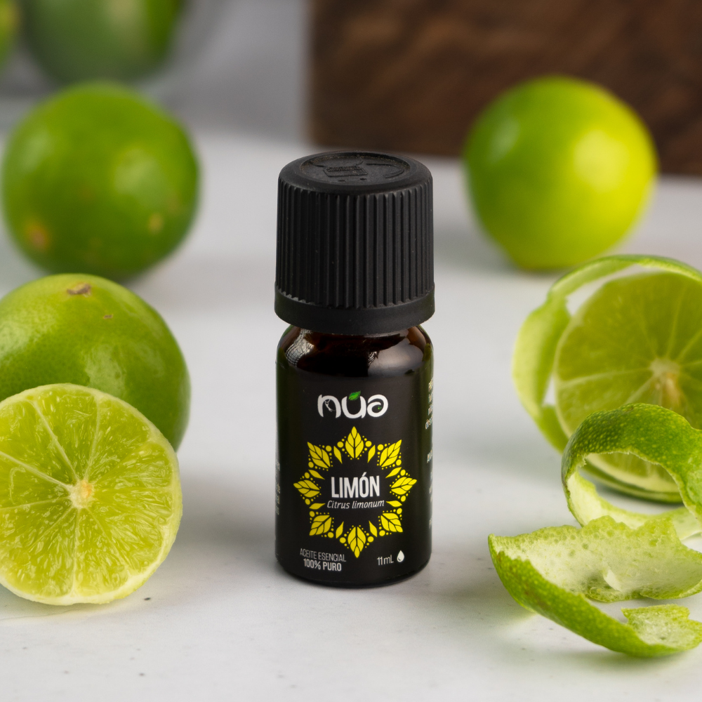 El limón (Citrus limonum) tiene un aroma cítrico fuerte, limpio y purificador que revitaliza y eleva. Está compuesto por un 68% de d-limoneno, un poderoso antioxidante. El aceite esencial de limón es deliciosamente refrescante y puede ser muy beneficioso para la piel.
