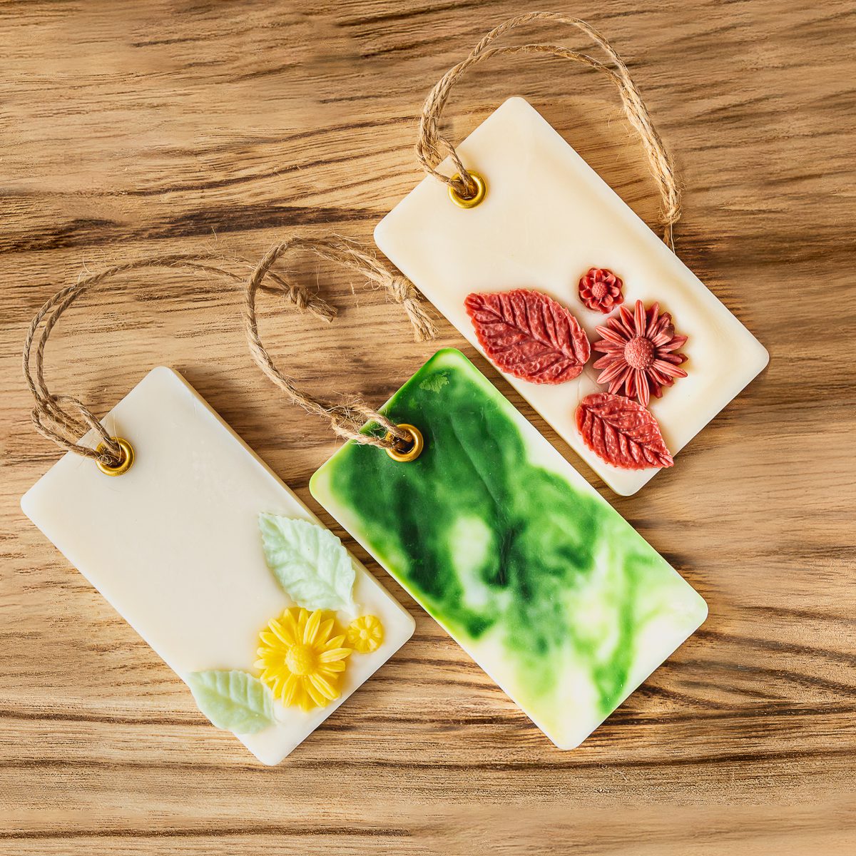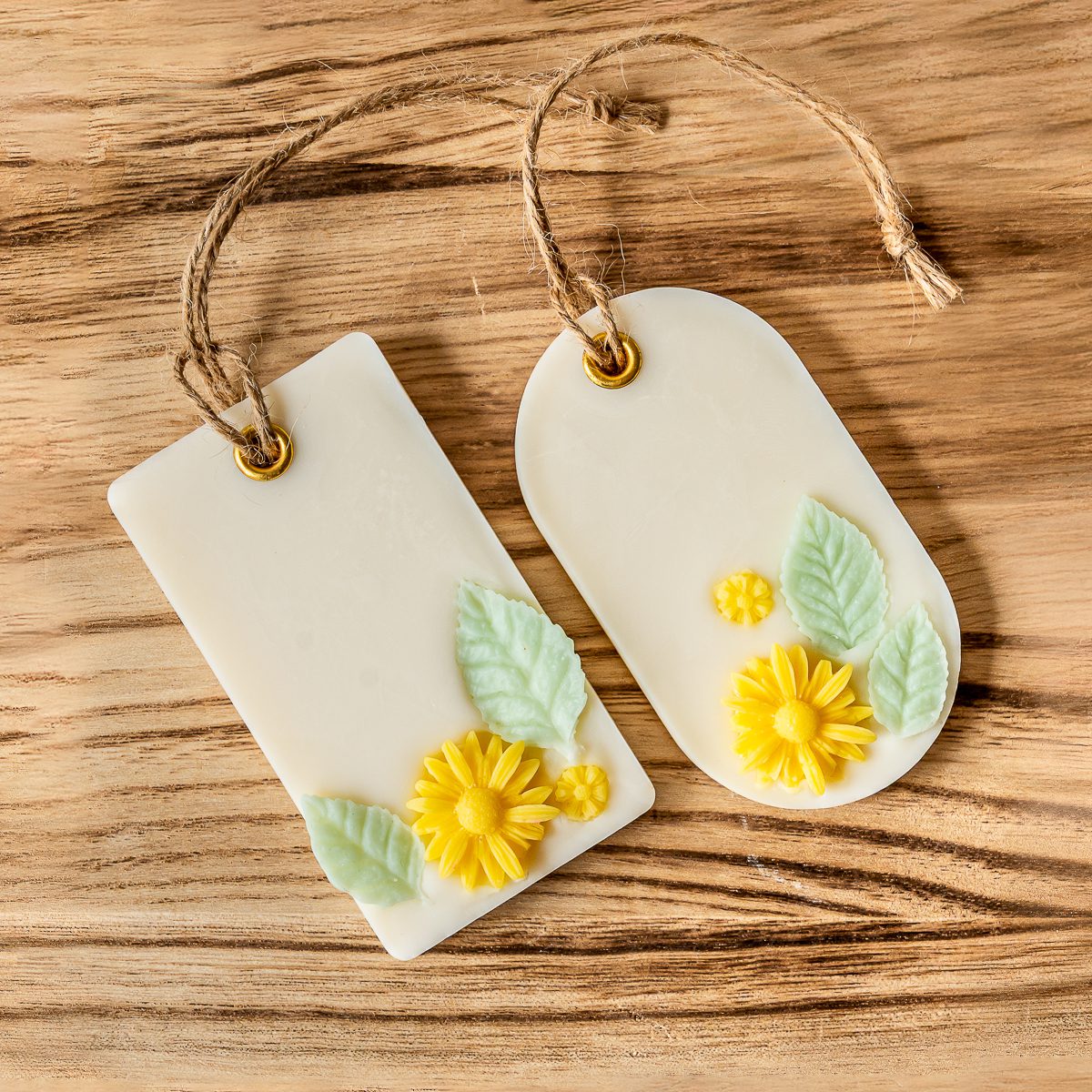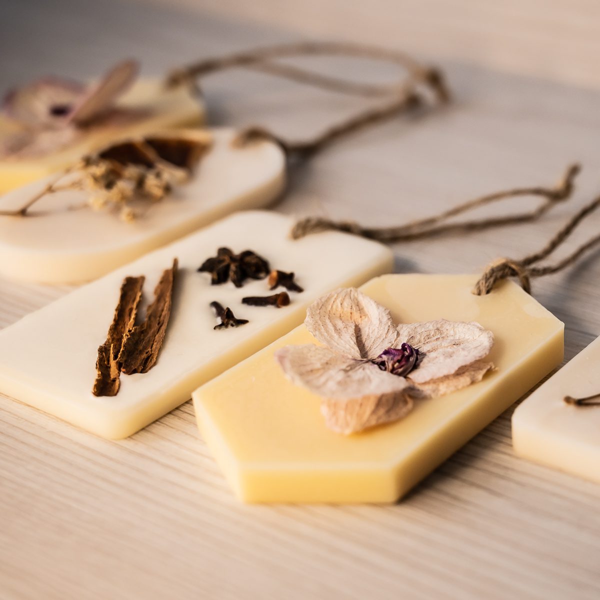 Tabletas aromáticas de cera de soya que puedes colocar en lugares pequeños como baños o closets para liberar su aroma en el ambiente. Están hechas con cera de soya de alto punto de fusión.