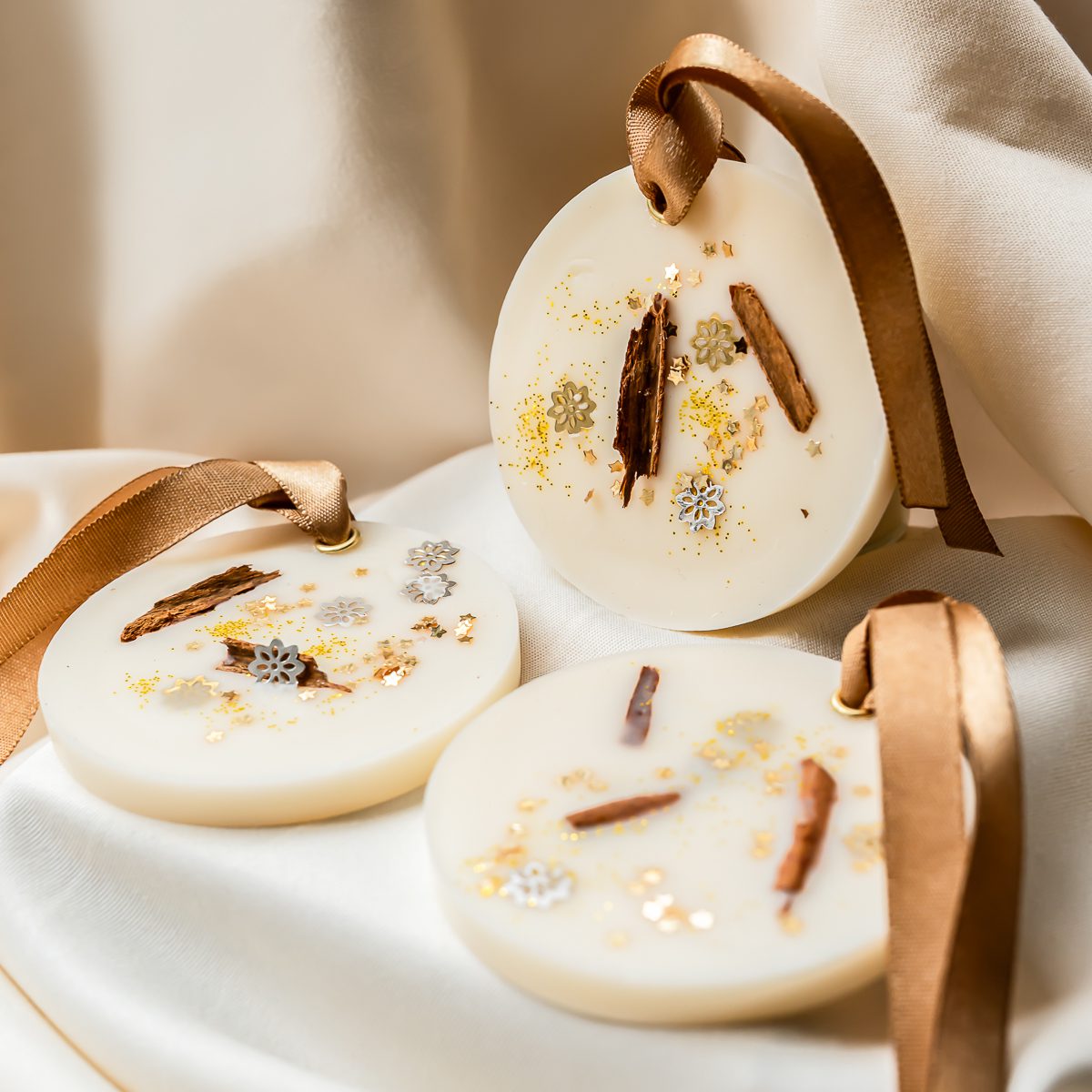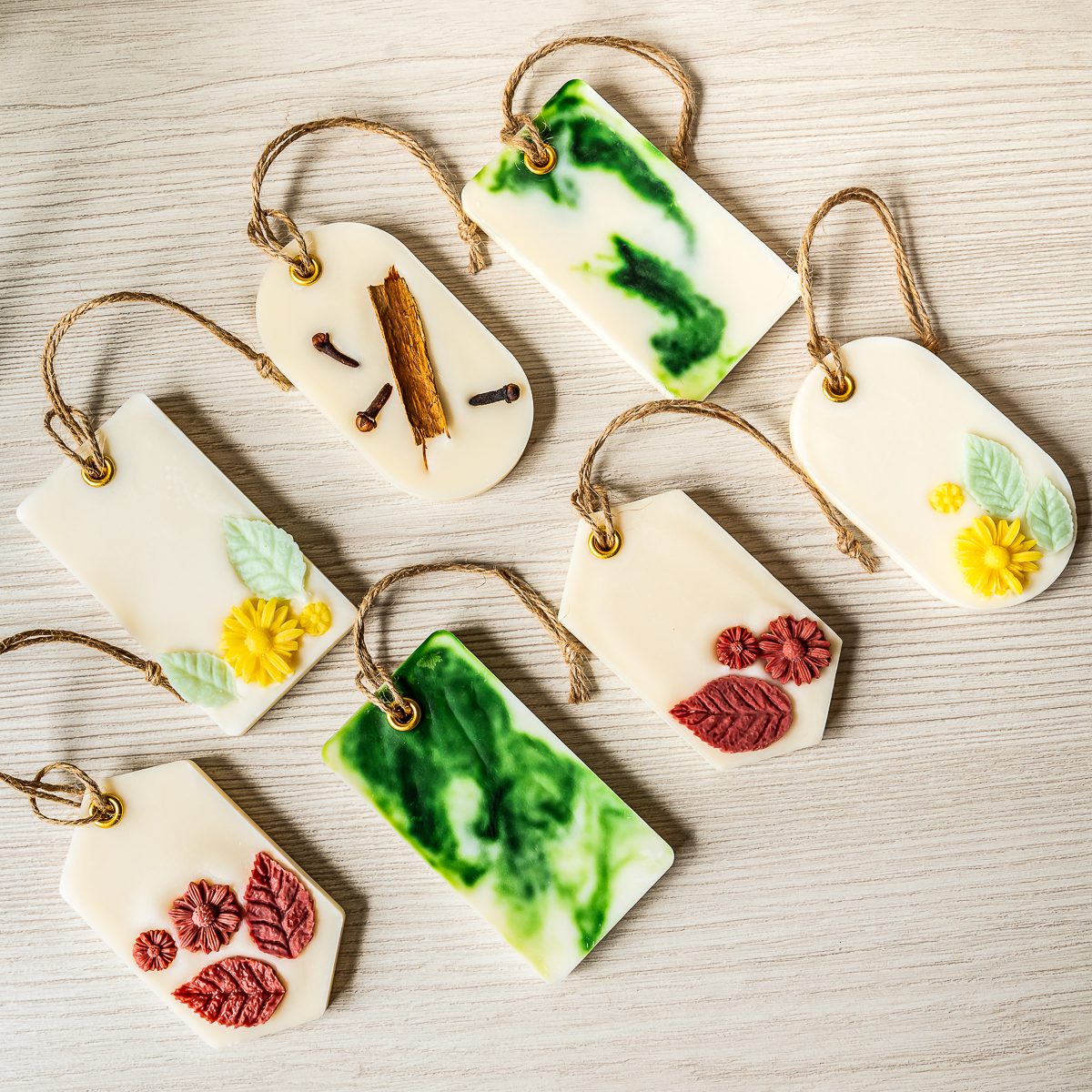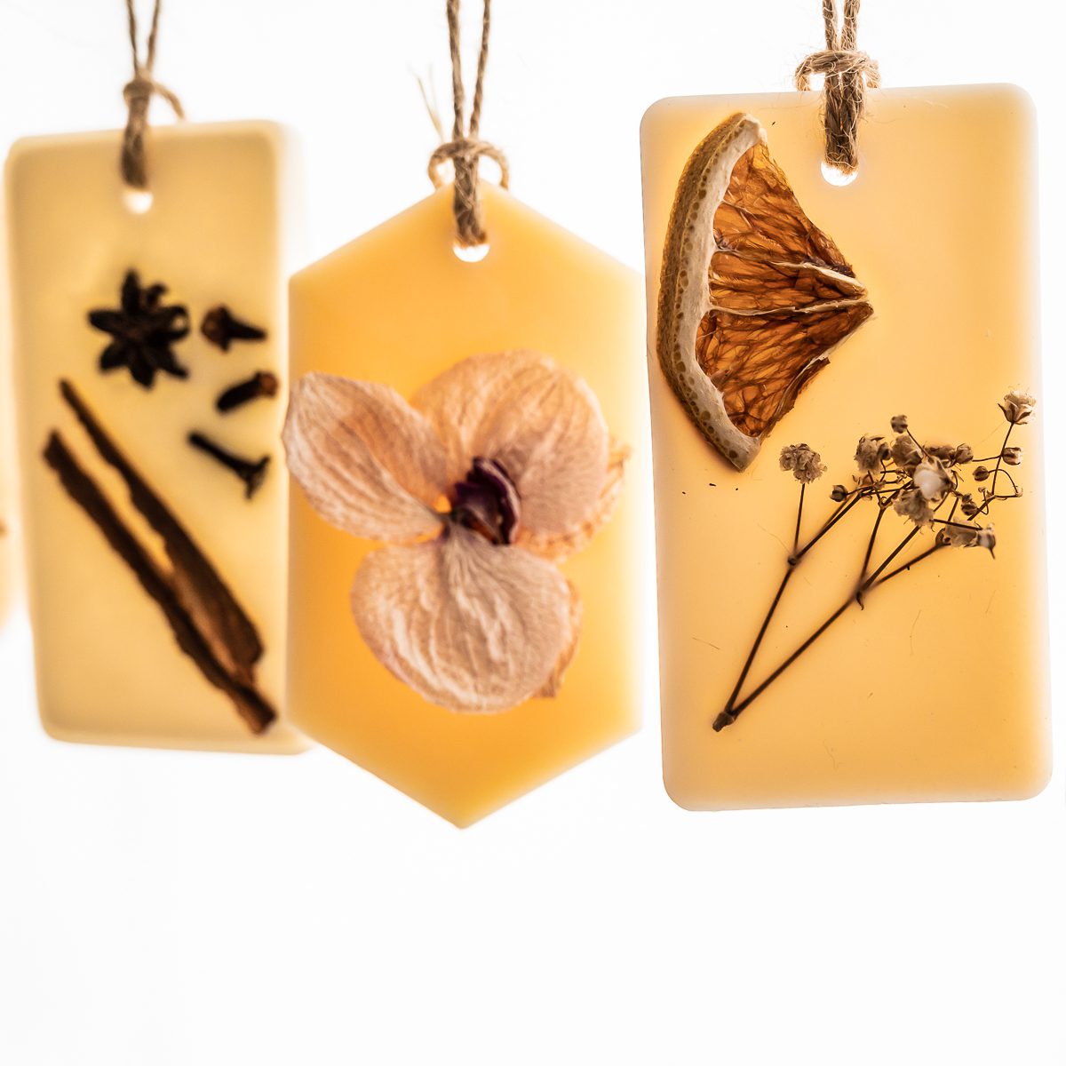 Tabletas aromáticas de cera de soya que puedes colocar en lugares pequeños como baños o closets para liberar su aroma en el ambiente. Están hechas con cera de soya de alto punto de fusión.