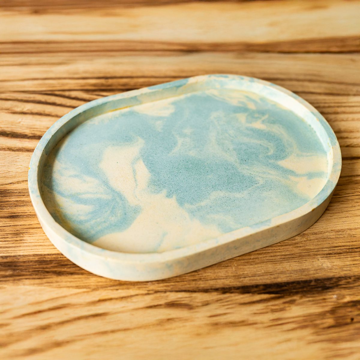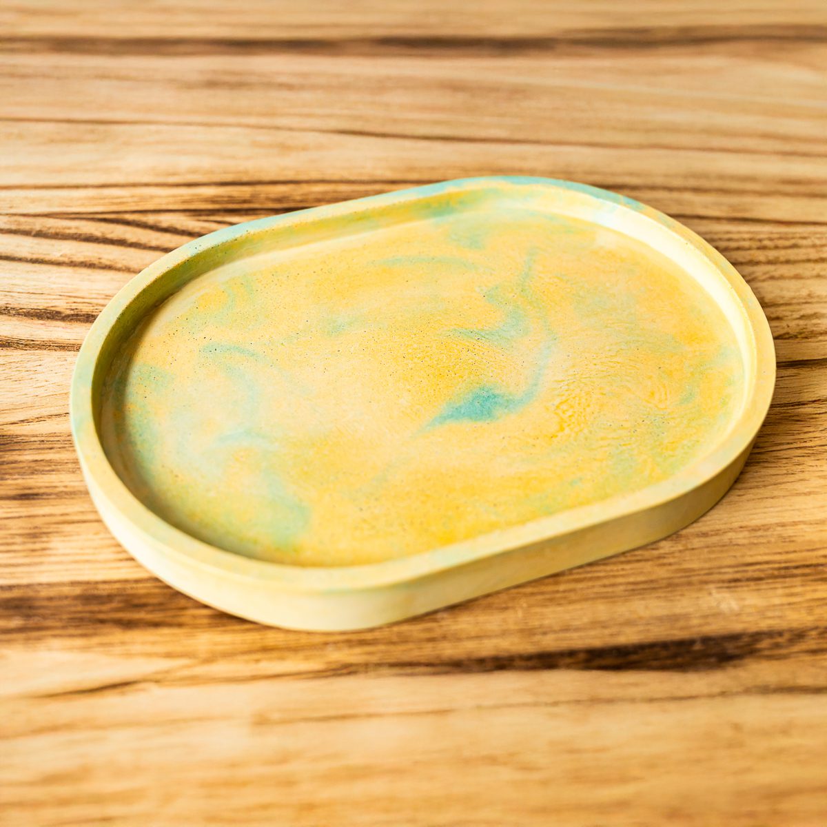 Nuestra bandeja ovalada de concreto es una pieza funcional y decorativa que aporta armonía y carácter a cualquier espacio. Su forma orgánica y líneas suaves contrastan con la solidez del concreto, logrando un diseño moderno, minimalista y atemporal.