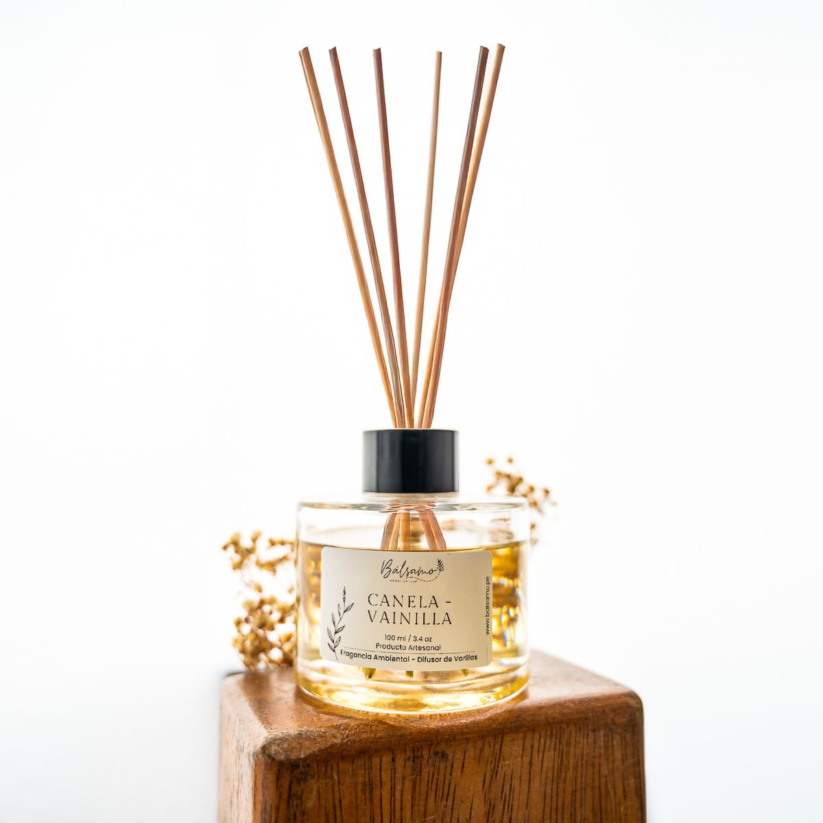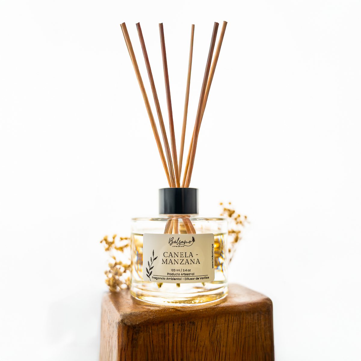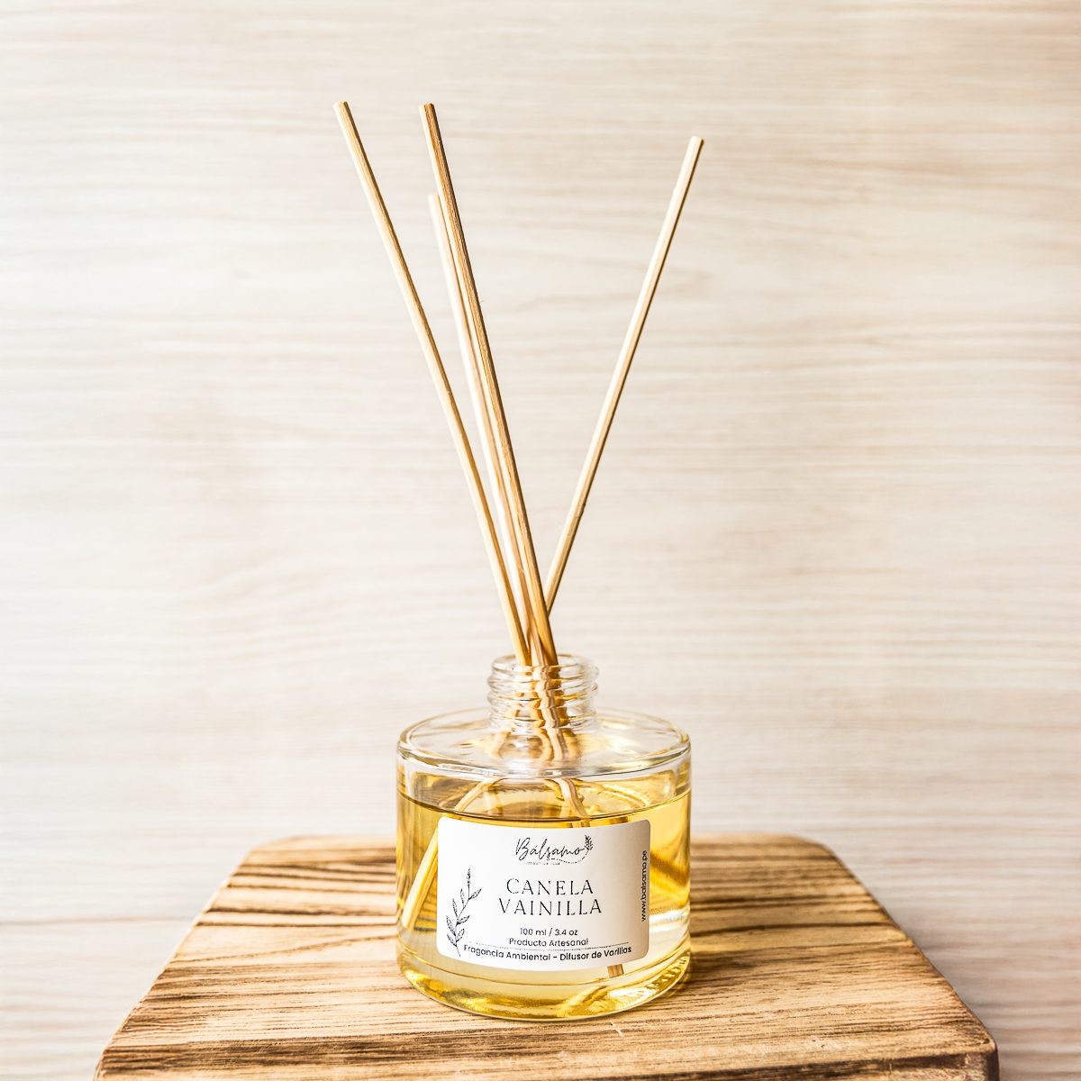 Difusor que aromatiza el hogar a través de las varillas. Las varillas humedecidas liberan la fragancia y el aroma se propaga por todo el ambiente.