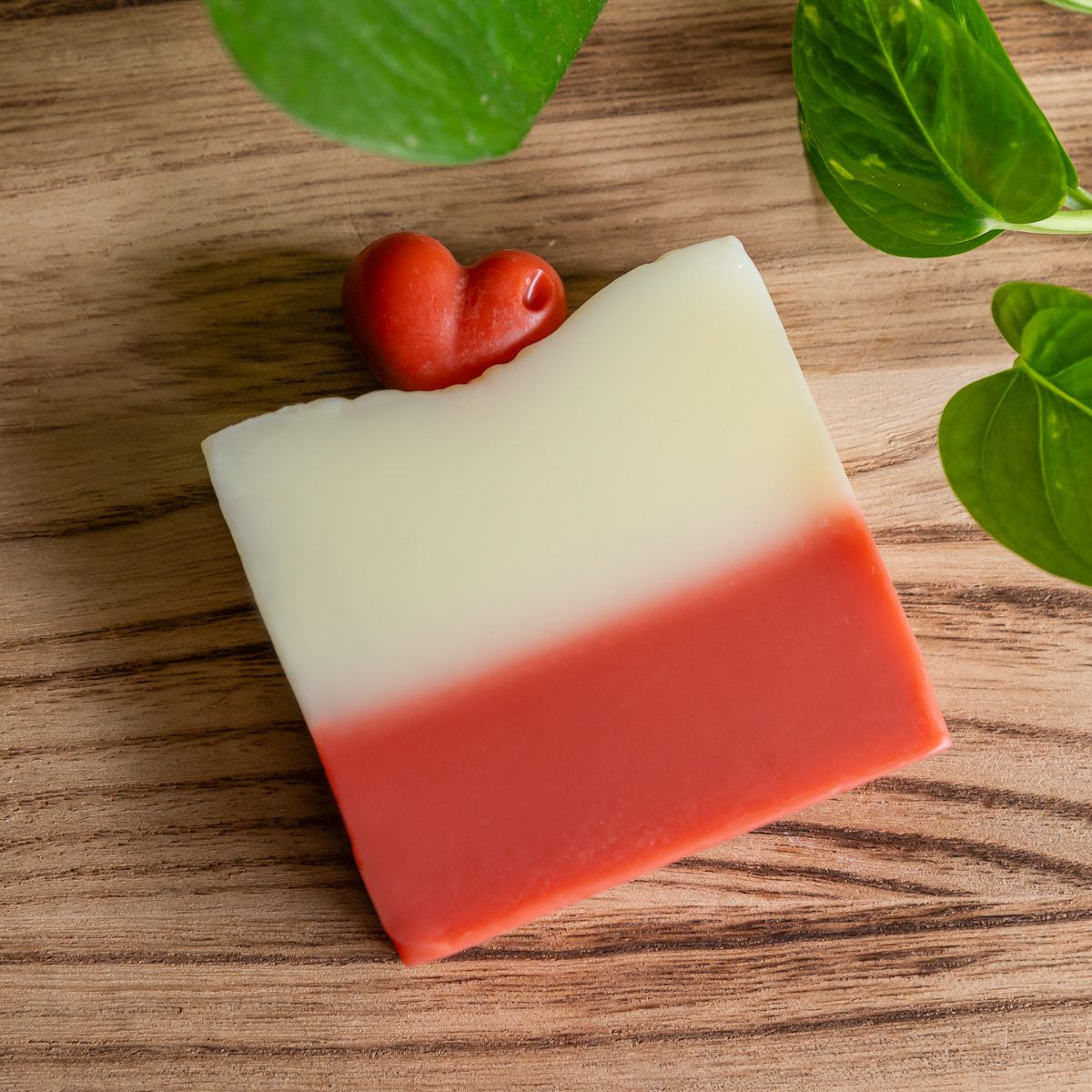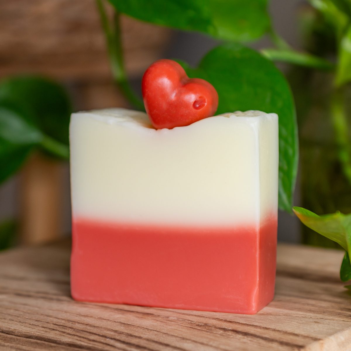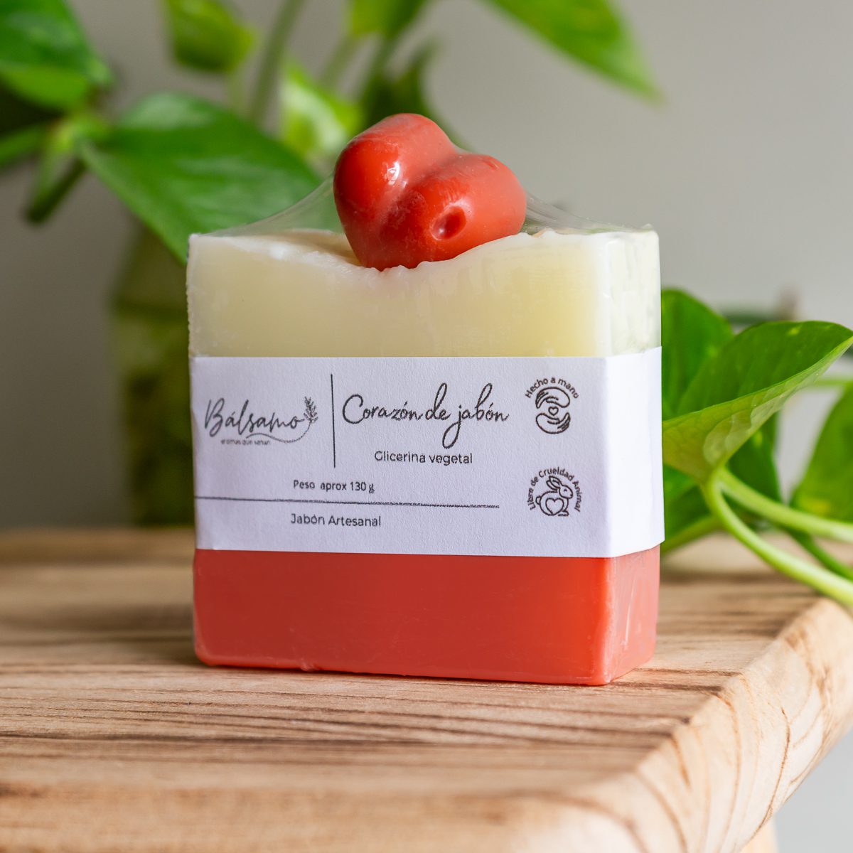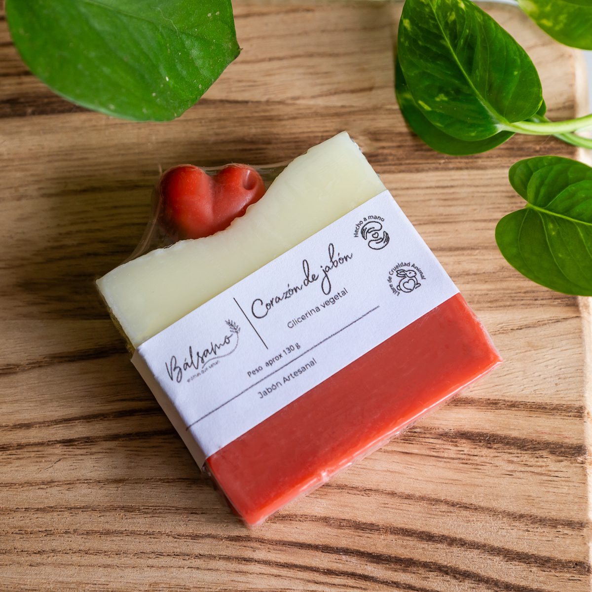 El jabón de corazón está hecho a base de glicerina vegetal y con un diseño para celebrar el amor. La glicerina es ideal para el cuidado de la piel porque la humecta, tiene un pH neutro, es apta para todo tipo de piel y atrae la humedad del ambiente, de este modo hidrata la piel.