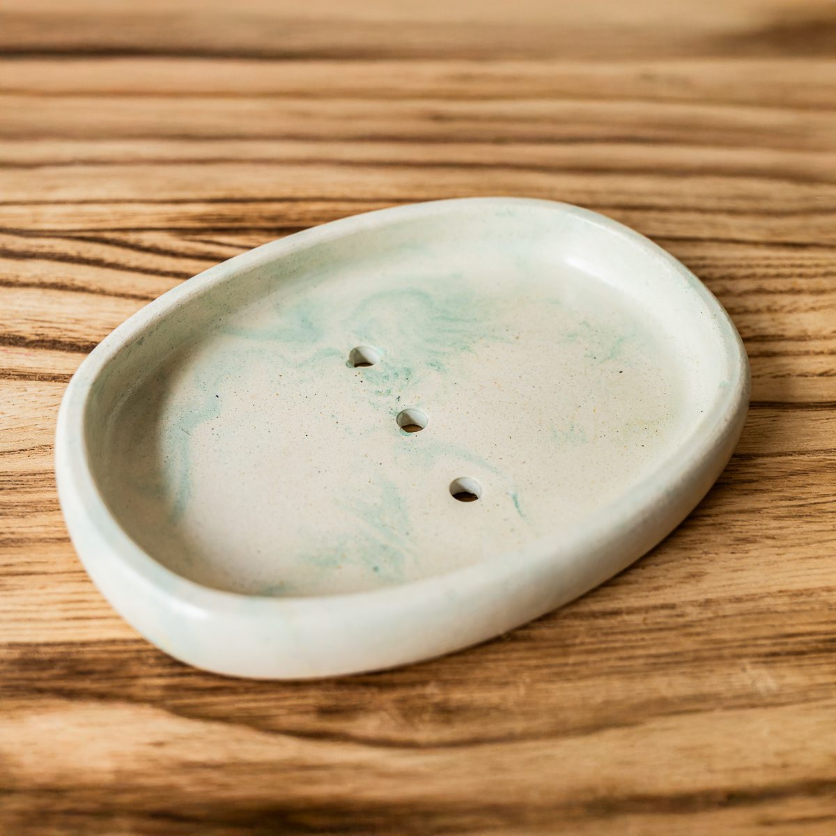 El concreto ofrece estabilidad y resistencia, mientras que su diseño permite mantener el jabón seco por más tiempo, ayudando a prolongar su duración y conservando mejor sus propiedades. Ideal para jabones artesanales, esta jabonera acompaña rutinas de cuidado personal con orden y armonía.