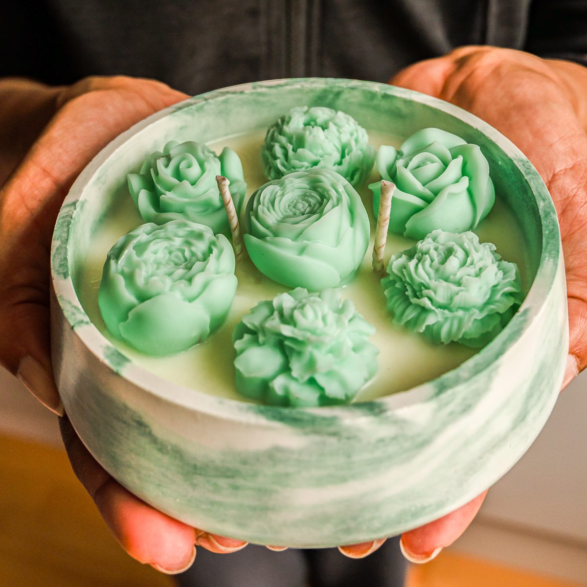 Gracias a su estructura sólida, el concreto mantiene una temperatura uniforme, permitiendo que la vela se consuma de manera más lenta y pareja. Esto no solo prolonga su duración, sino que también potencia la experiencia aromática en tu ambiente.