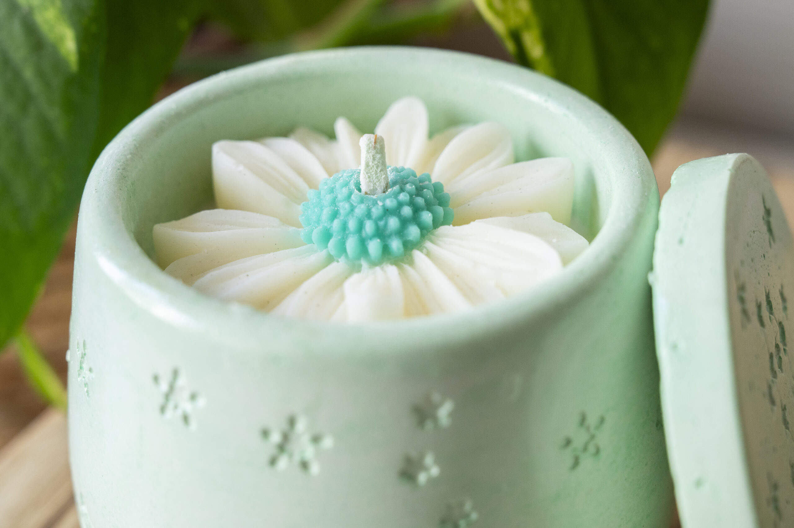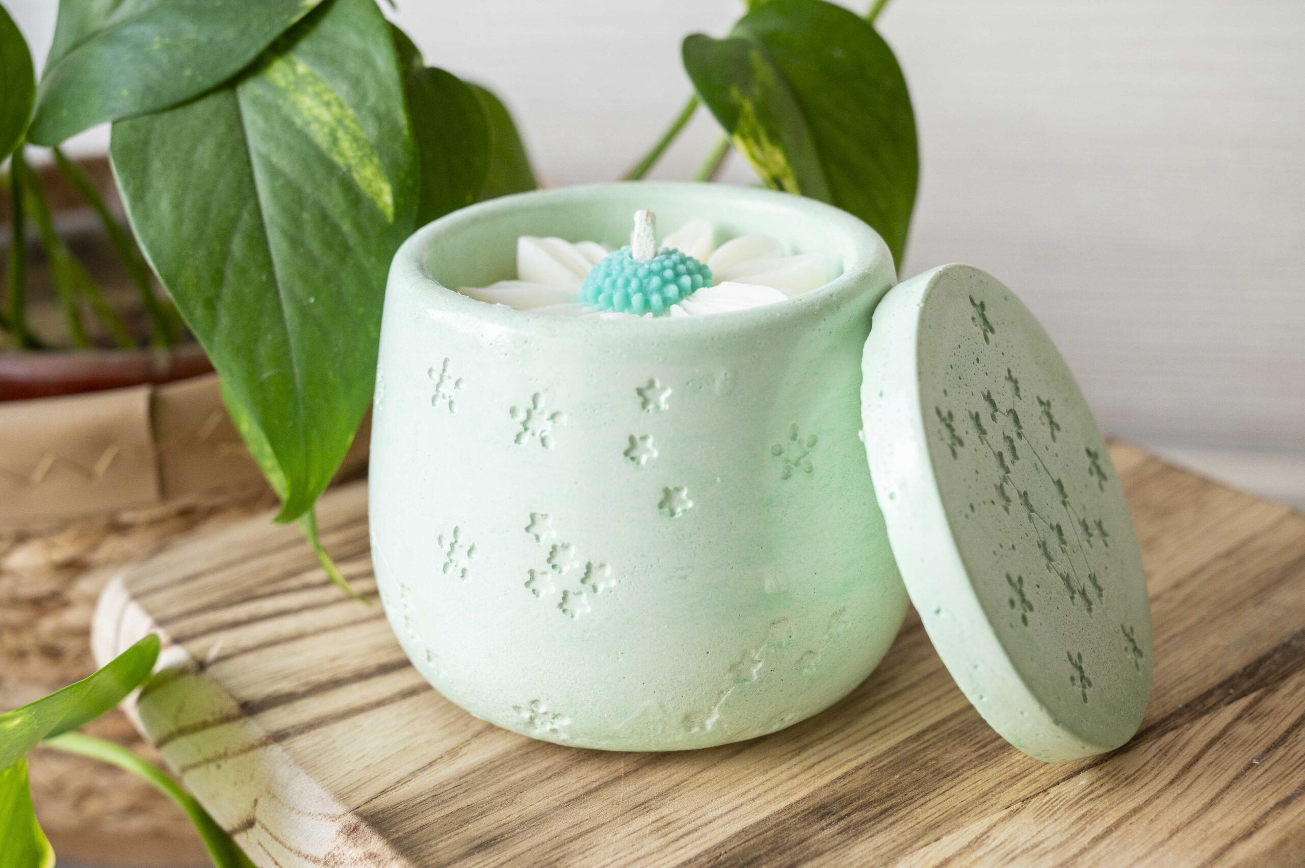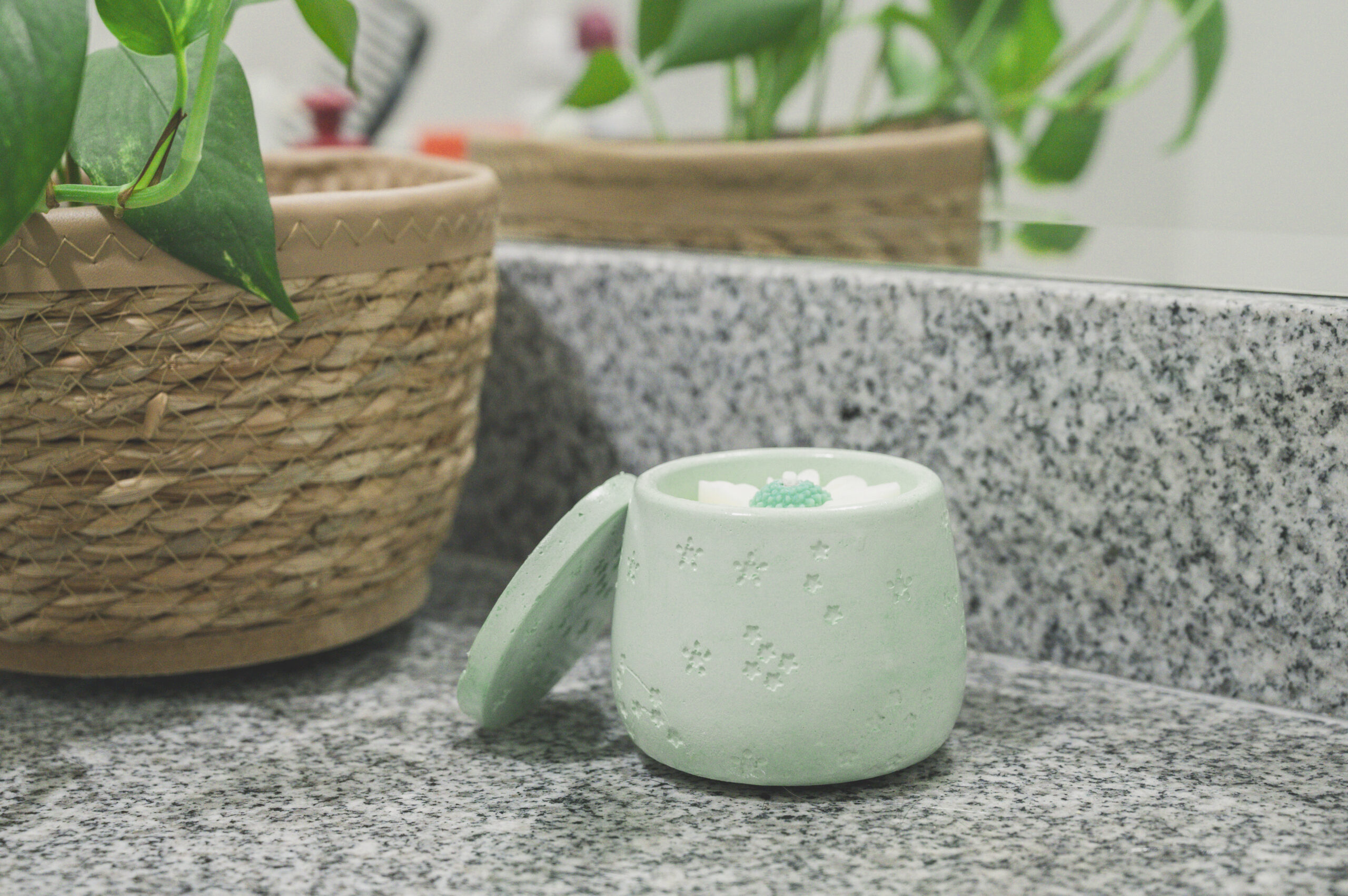 Vela hecha con cera de origen vegetal, es un producto que tiene un punto de fusión bajo, es decir, se derrite con facilidad y no quema. Nuestro contenedor de concreto ha sido diseñado para transformar cualquier vela en una pieza decorativa única. Su acabado artesanal y textura mineral aportan un toque moderno y elegante, mientras que su estructura robusta garantiza una larga duración. Cada pieza es elaborada a mano, lo que la convierte en un elemento distintivo dentro de tu hogar.