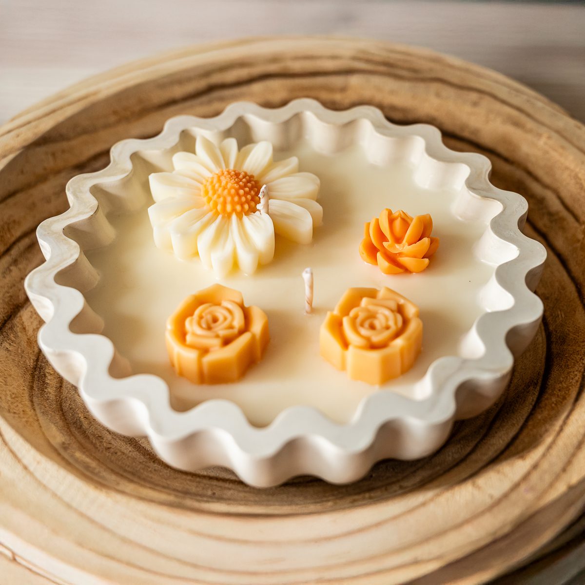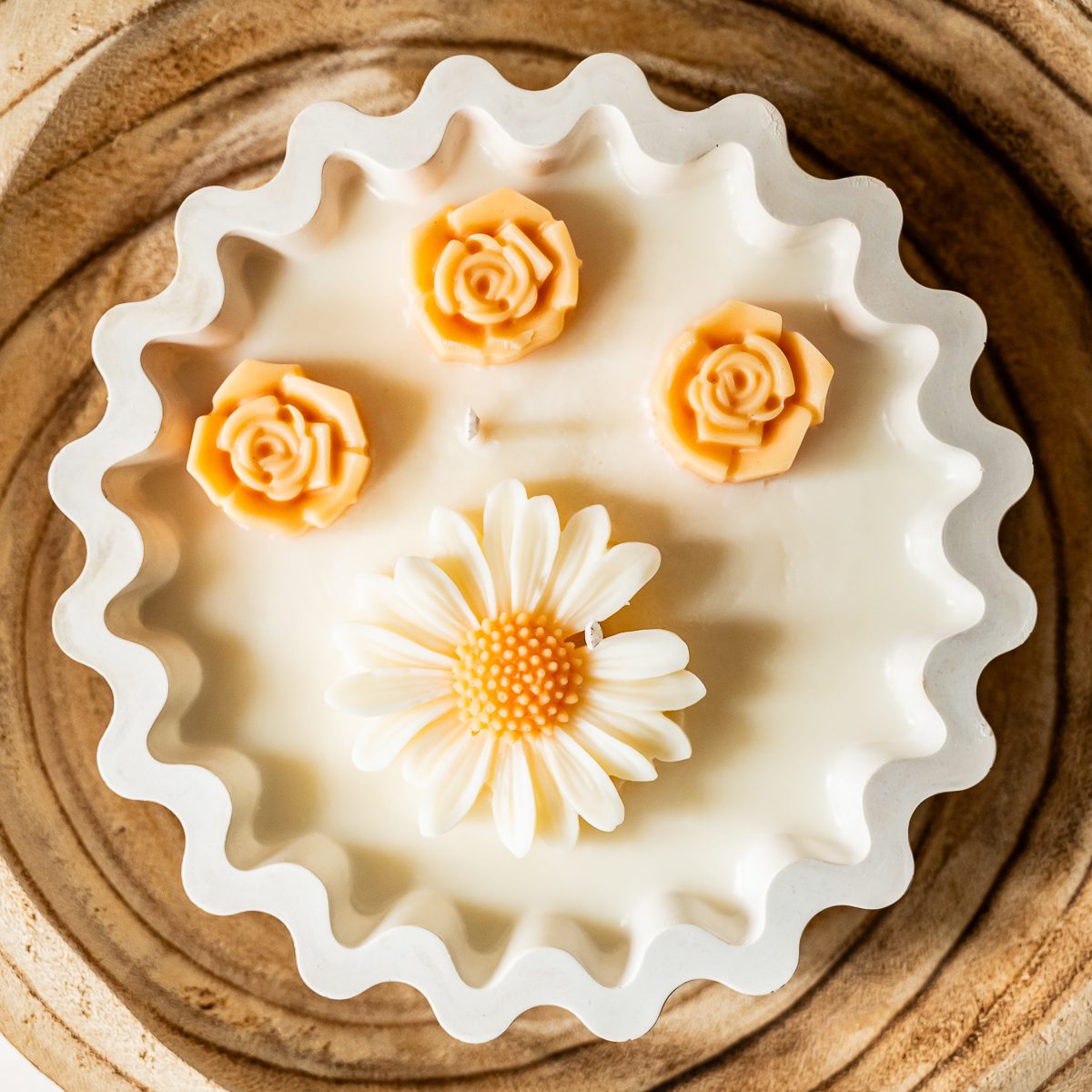 Nuestros wax melts están hechos con cera de soya de alto punto de fusión, una cera vegetal de quemado limpio y aroma agradable.